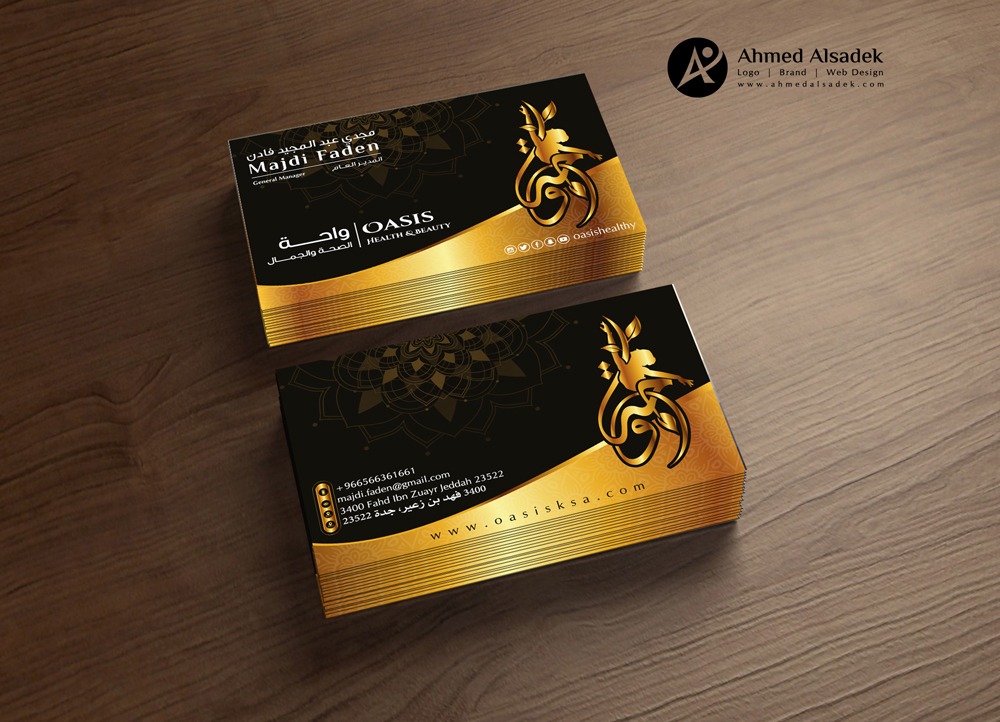 تصميم كروت شخصية شركة واحة الصحة والجمال جدة السعودية