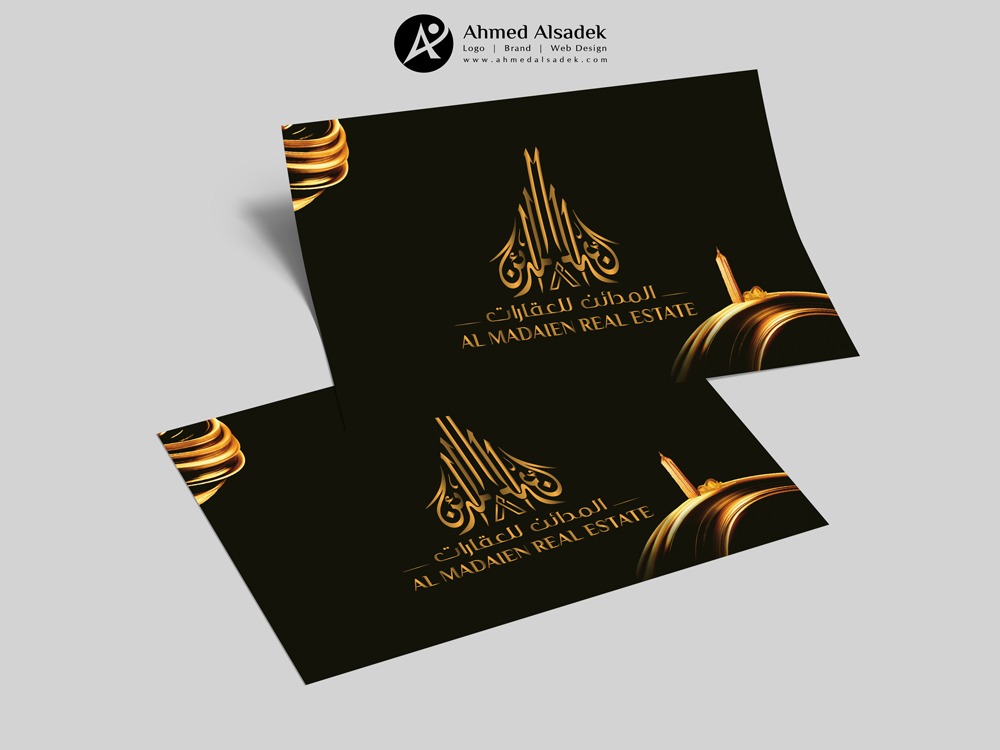 تصميم كروت شخصية لشركة المدائن للعقارات في أبوظبي الامارات